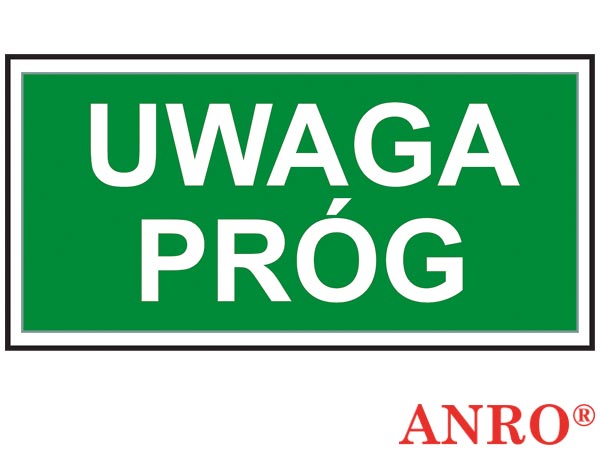 Znak ewakuacyjny „Uwaga próg”.- format znaku A w rozmiarze 150x300- wykonany nadrukiem fotoluminescencyjnym: FS - folia samoprzylepna, PT - płyta PCV