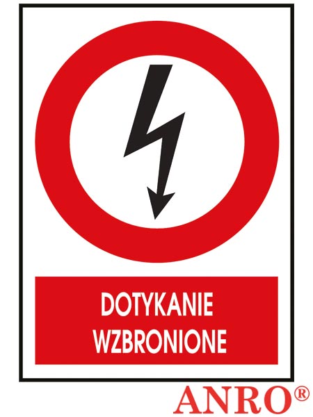 Znak elektryczny „Dotykanie wzbronione”.- znak w rozmiarze 74x105- wykonany z folii samoprzylepnej