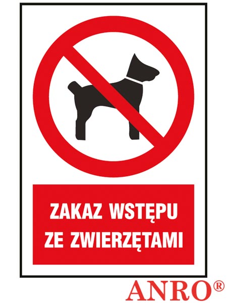 Znak BHP „Zakaz wstępu ze zwierzętami”.- format znaku P w rozmiarze 220x300- wykonany z: P - płyta PCV- zgodny z normą PN-93/N-01256/03