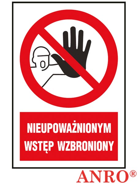 Znak BHP „Nieupoważnionym wstęp wzbroniony”.- znak w rozmiarze 220x300- wykonany z: F - folia samoprzylepna, P - płyta PCV- zgodny z normą PN-93/N-01256/03
