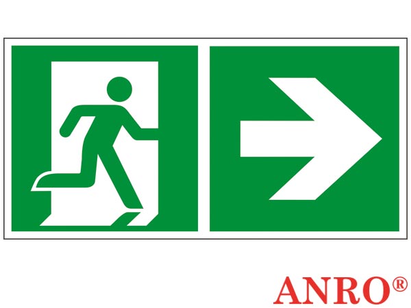 Znak ewakuacyjny „Kierunek do wyjścia w prawo i prosto (za drzwiami)”- format znaku A w rozmiarze 150x300- wykonany nadrukiem fotoluminescencyjnym: FS - folia samoprzylepna, PT - płyta PCV, PS - płyta foto samoprzylepna- zgodny z normą EN ISO 7010