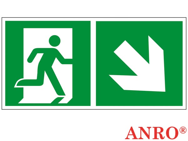 Znak ewakuacyjny „Kierunek do wyjścia w prawo i w dół (za drzwiami)”- format znaku A w rozmiarze 150x300- wykonany nadrukiem fotoluminescencyjnym: FS - folia samoprzylepna, PT - płyta PCV- zgodny z normą EN ISO 7010