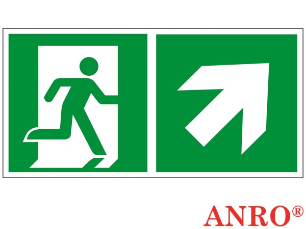 Znak ewakuacyjny „Kierunek do wyjścia w prawo i w górę (za drzwiami)”- format znaku A w rozmiarze 150x300- wykonany nadrukiem fotoluminescencyjnym: PT - płyta PCV, PS - płyta foto samoprzylepna- zgodny z normą EN ISO 7010