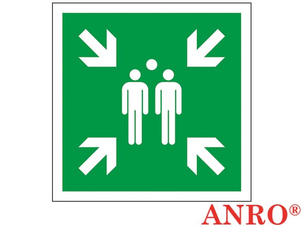 Znak ewakuacyjny „Punkt zbiórki do ewakuacji”- format znaku F w rozmiarze 150x150- wykonany nadrukiem fotoluminescencyjnym: PT - płyta PCV- zgodny z normą EN ISO 7010