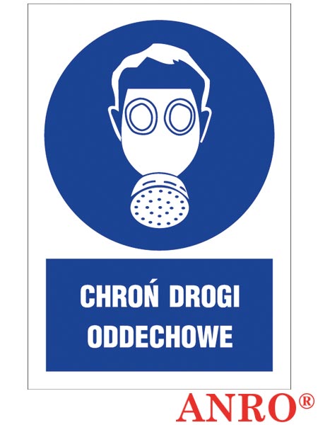 Znak BHP „Chroń drogi oddechowe”.- znak w rozmiarze 200x300- wykonany z: F - folia samoprzylepna, P - płyta PCV- zgodny z normą PN-93/N-01256/03