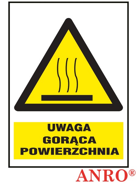 Znak BHP „Uwaga! Gorąca powierzchnia”.- znak w rozmiarze 200x300- wykonany z: F - folia samoprzylepna, P - płyta PCV
