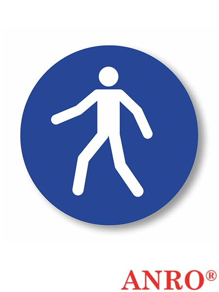 Znak podłogowy Przechodź w oznakowanym miejscu.- w kształcie koła o średnicy: 300 mm- grubość: 0,3 mm- wykonany z folii PVC