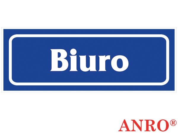 Znak „Biuro”.- format znaku T w rozmiarze 90x240- wykonany z: P - płyta PCV, F - folia samoprzylepna