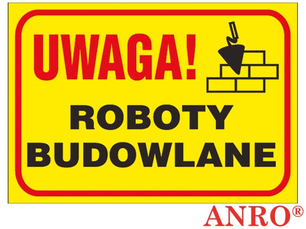 Tablice budowlane „Uwaga! Roboty budowlane ”.- format znaku L w rozmiarze 250x350- wykonany z płyty PCV