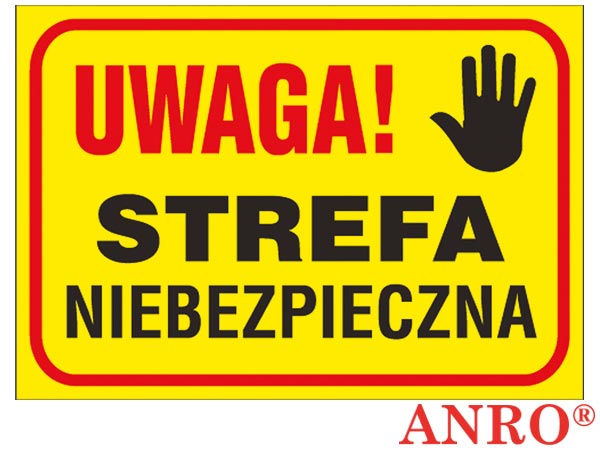 Tablice budowlane „Uwaga! Strefa niebezpieczna”.- format znaku L w rozmiarze 250x350- wykonany z płyty PCV